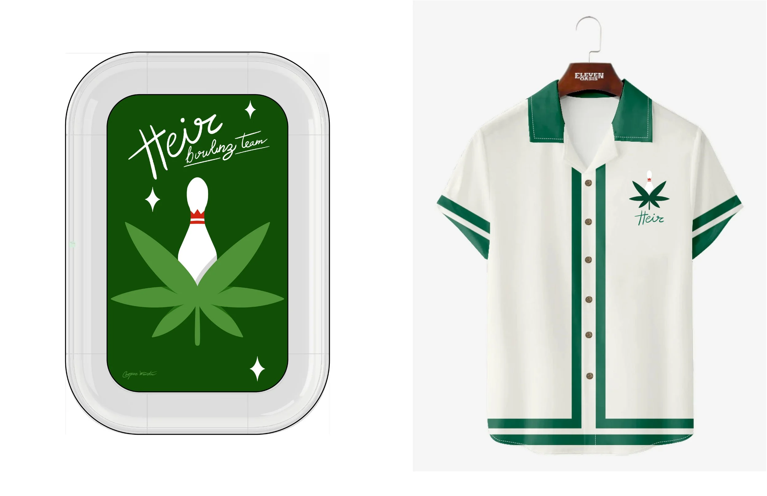Heir is a high end weed company that I have been a fan of ever since graduating college, so when they reached out to do a collaboration I was thrilled. Originally the ask was to design a few rolling trays but it grew into a full collaboration line complete with merch, bongs, and pipes. Some highlights of the collection are “High School” which features a cast of four characters representing every type of stoner you grew up with, the “Heir Bowling Team” which is inspired by my dad’s code in college of “going bowling” with his friends, and “Couch Surfing” which is a fan favorite. The trays will come out this holiday season.